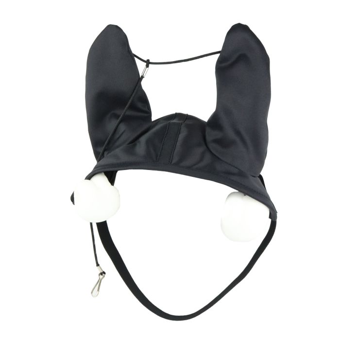 Utstyrt med elastisk stropp og borrelåsfeste. Ponnistørrelse. De avtrekkbare ørebeskyttelsene bæres over hodelaget og har snorer som lar kusken fjerne dem fra ponniens ører under trening eller løp om ønskelig. Inkluderer skumørepropper.Håndlaget i Finland.